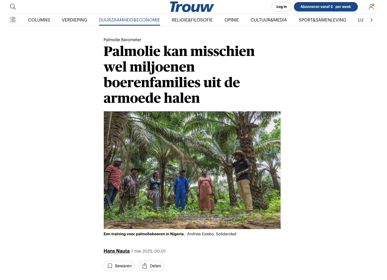 Trouw - "Palmolie kan misschien wel miljoenen boerenfamilies uit de armoede halen." Het verhaal van duurzame palmolie als kans, niet als probleem.