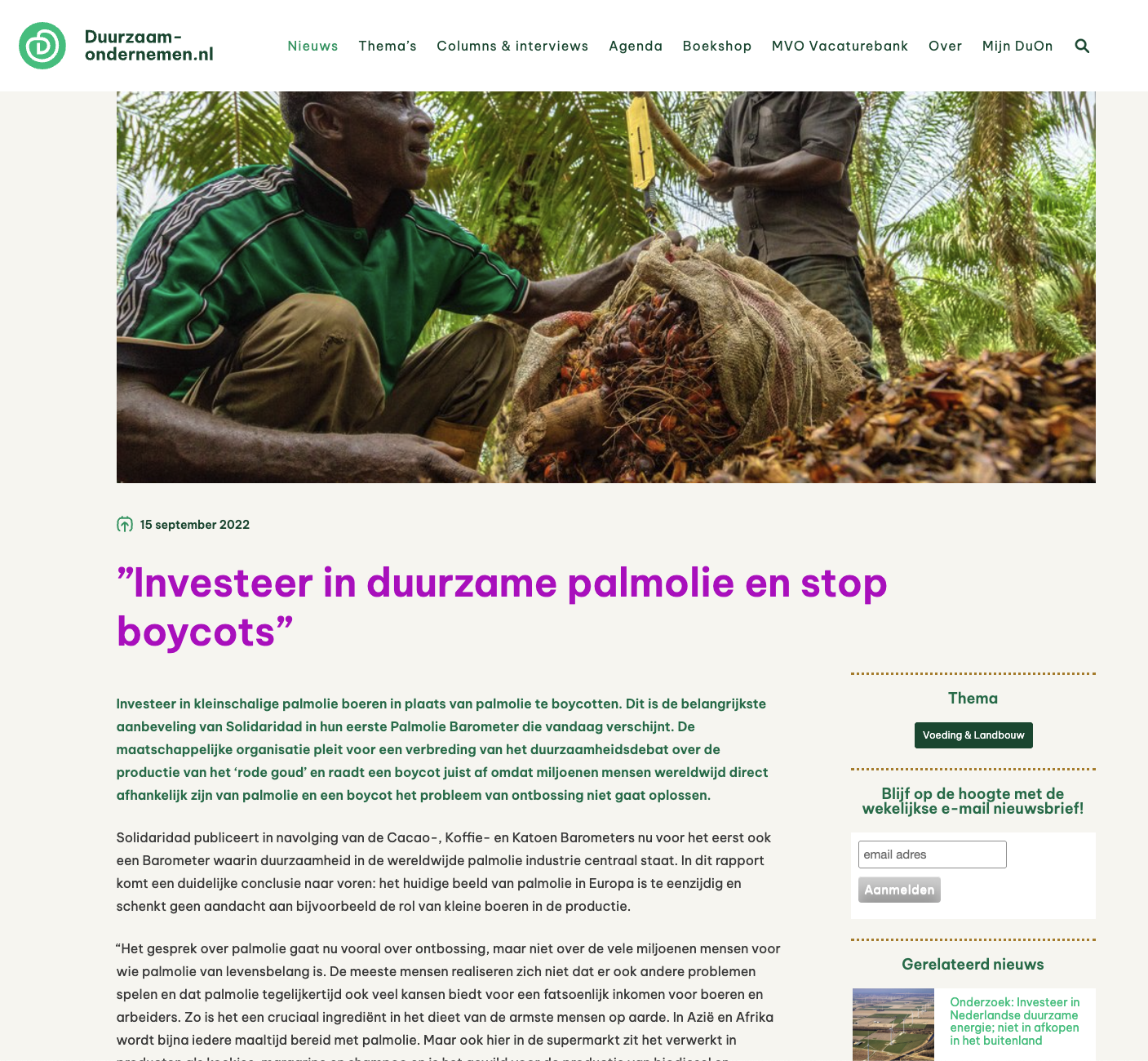 Duurzaam Ondernemen, "Investeer in duurzame palmolie en stop boycots" - De Palmolie Barometer van Solidaridad zette aan tot een ander debat over palmolie.